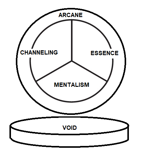 Essence, Mentalism and Channeling are lesser streams, originating from the primordial source of the Arcane. It was thought that Arcane was the Prime Source for all creation, but the foursome discovered an incomplete model with a source of magic other than the arcane: